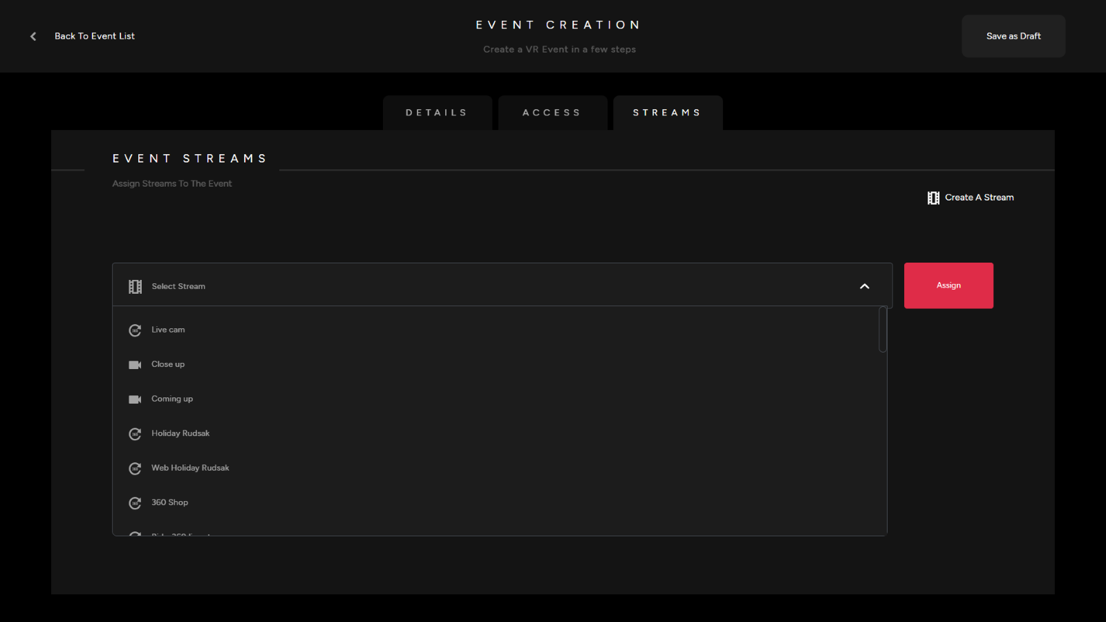 • Select the drop down & pick a stream to add, then click assign to confirm your selection.