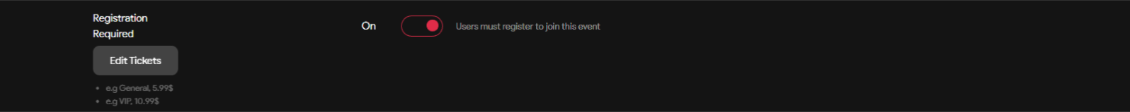 • Tickets: Pick where the tickets to the event will be "free” or if they will need to be purchased.