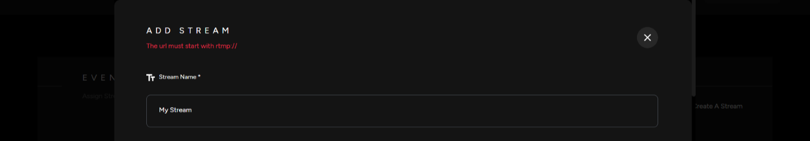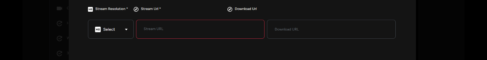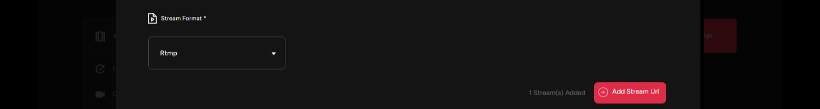 3)  Select a stream format (RTMP, 3D, File, Cmaf/Dash)