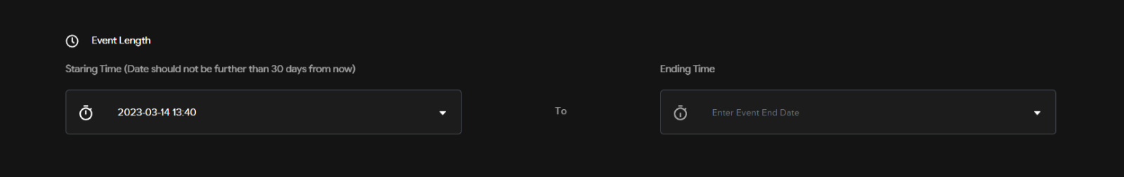 • Select the duration of your event. (Start date should not be further than 30 days from now)