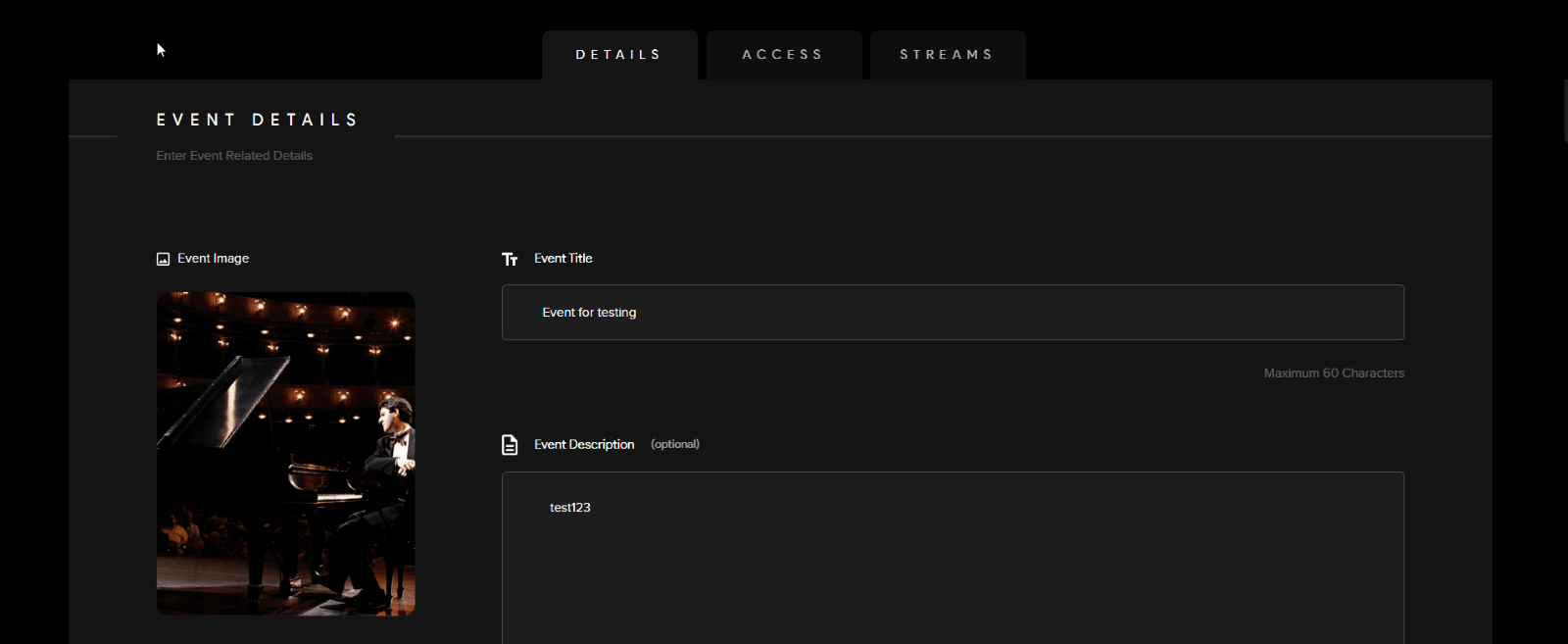 1. Enter your your Event Details, Add a Title, Event Image & Description (optional).