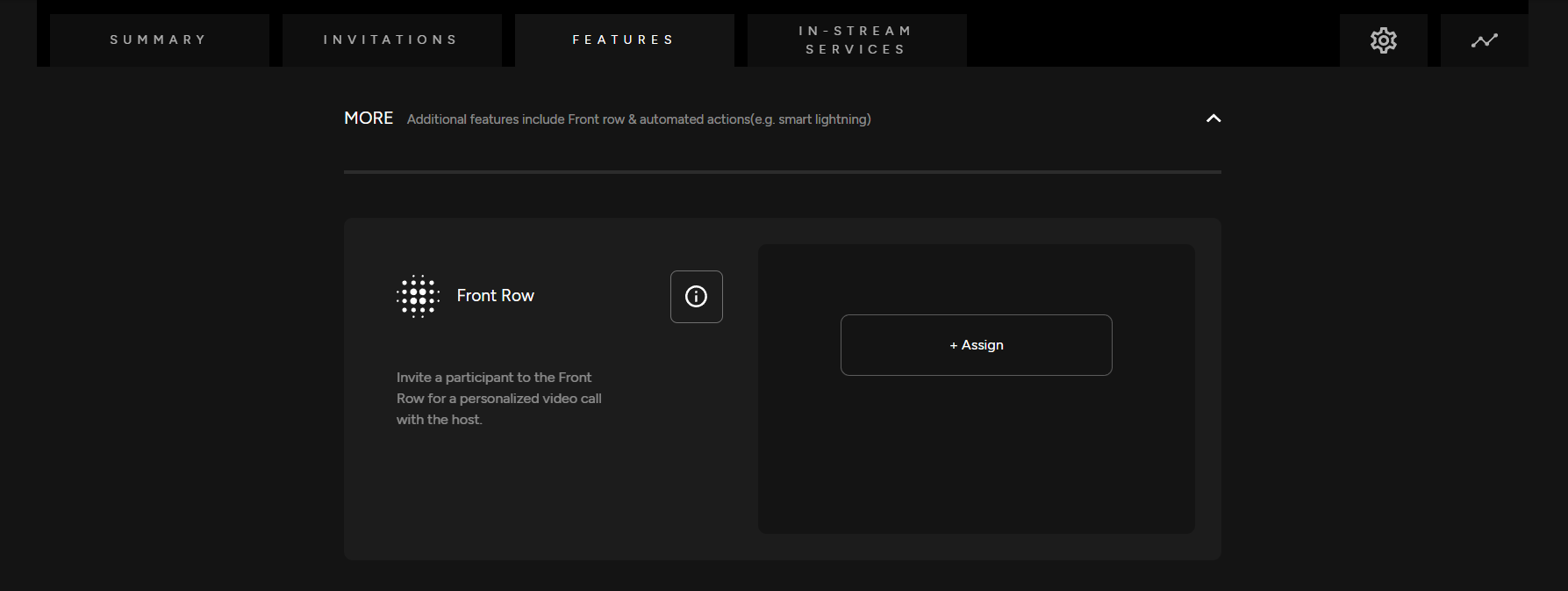 Front Row allows a lucky viewer to get closer to the event via a 1 on 1 video call with the host, artist, etc.