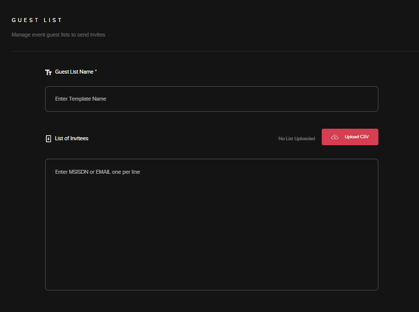 3. Enter a list of invitees using all phone numbers available to you. You have the option to also upload a CSV file with all the phone numbers rather than having to enter them one by one.
