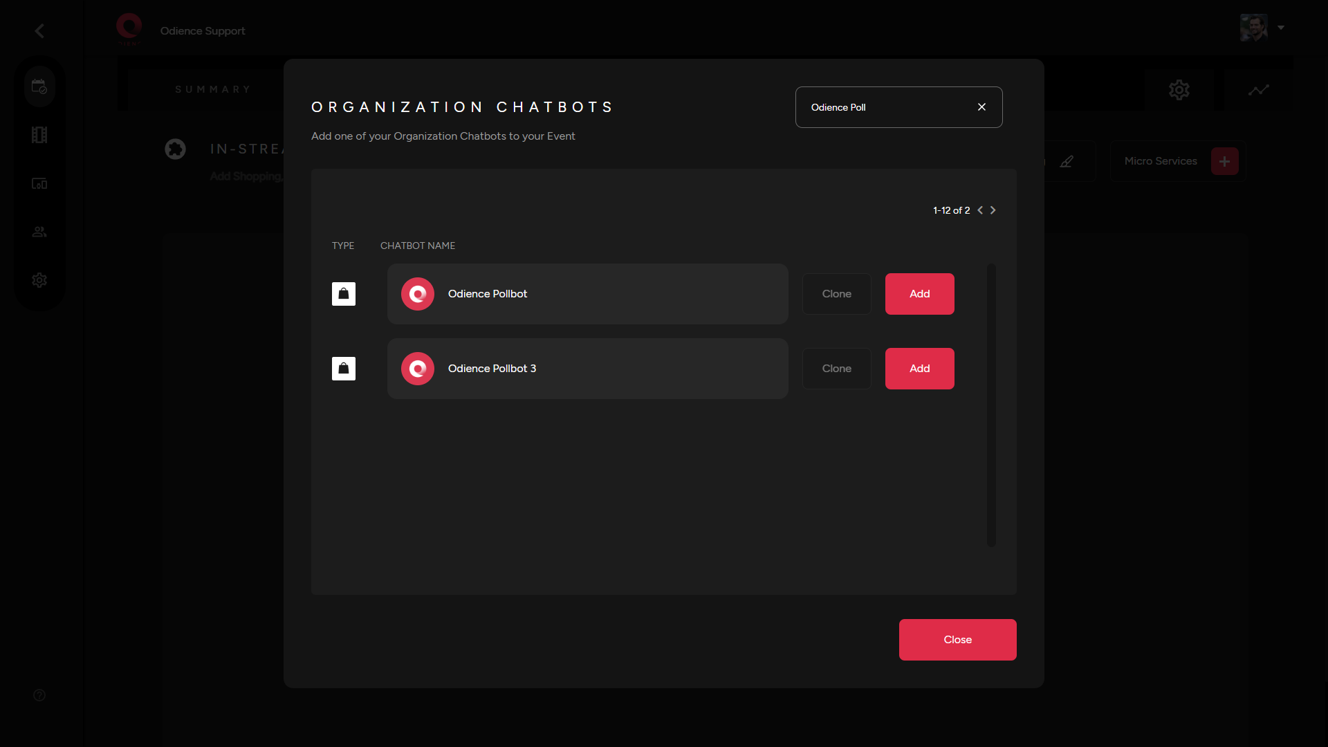 1. In the "Micro Services" drop down, select "Featured Catalog". Add a shopping chatbot from the Directory as the source.