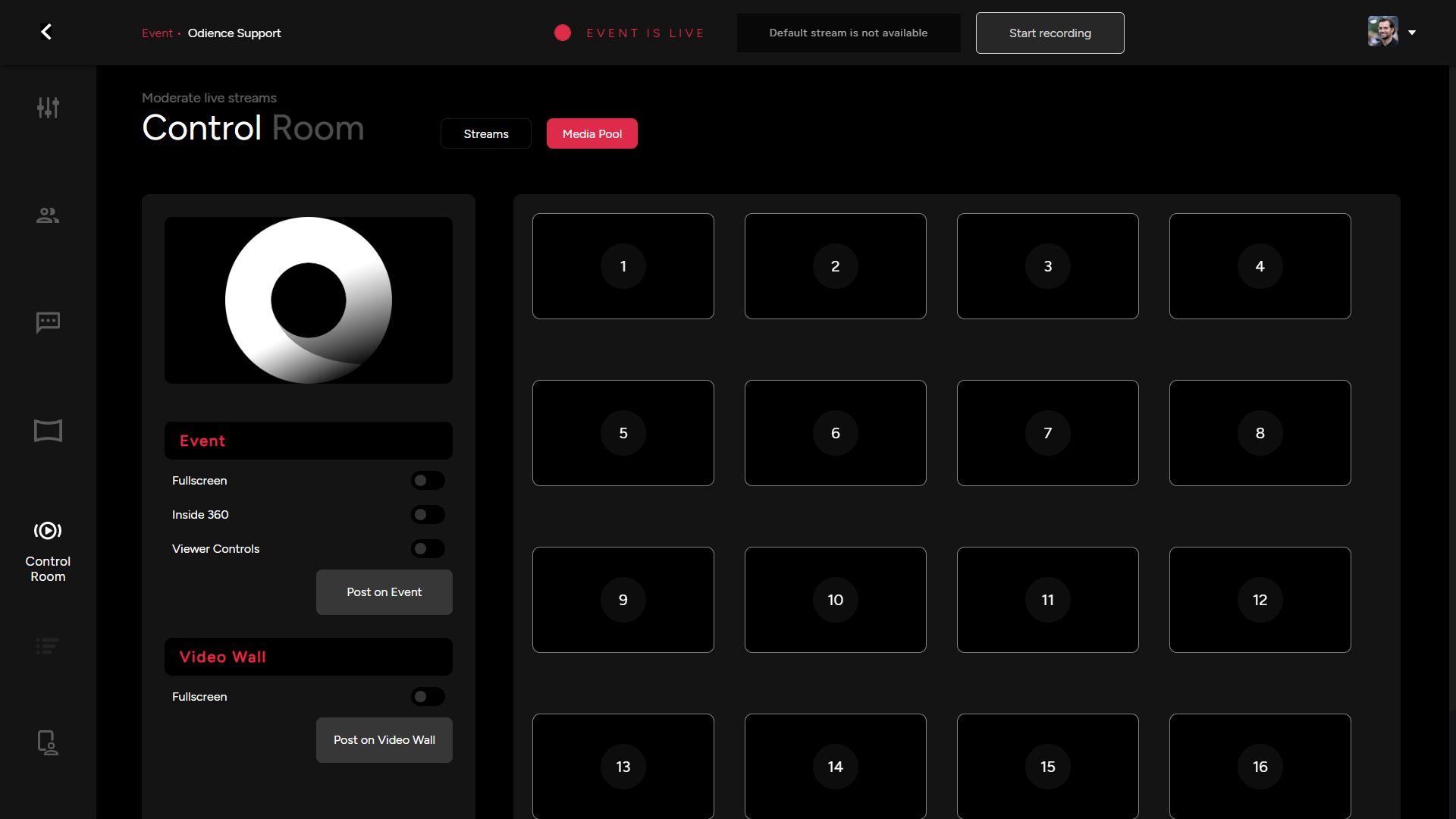 - Manage event and video wall content from your media control hub. Add new content or modify how it appears in your live event.