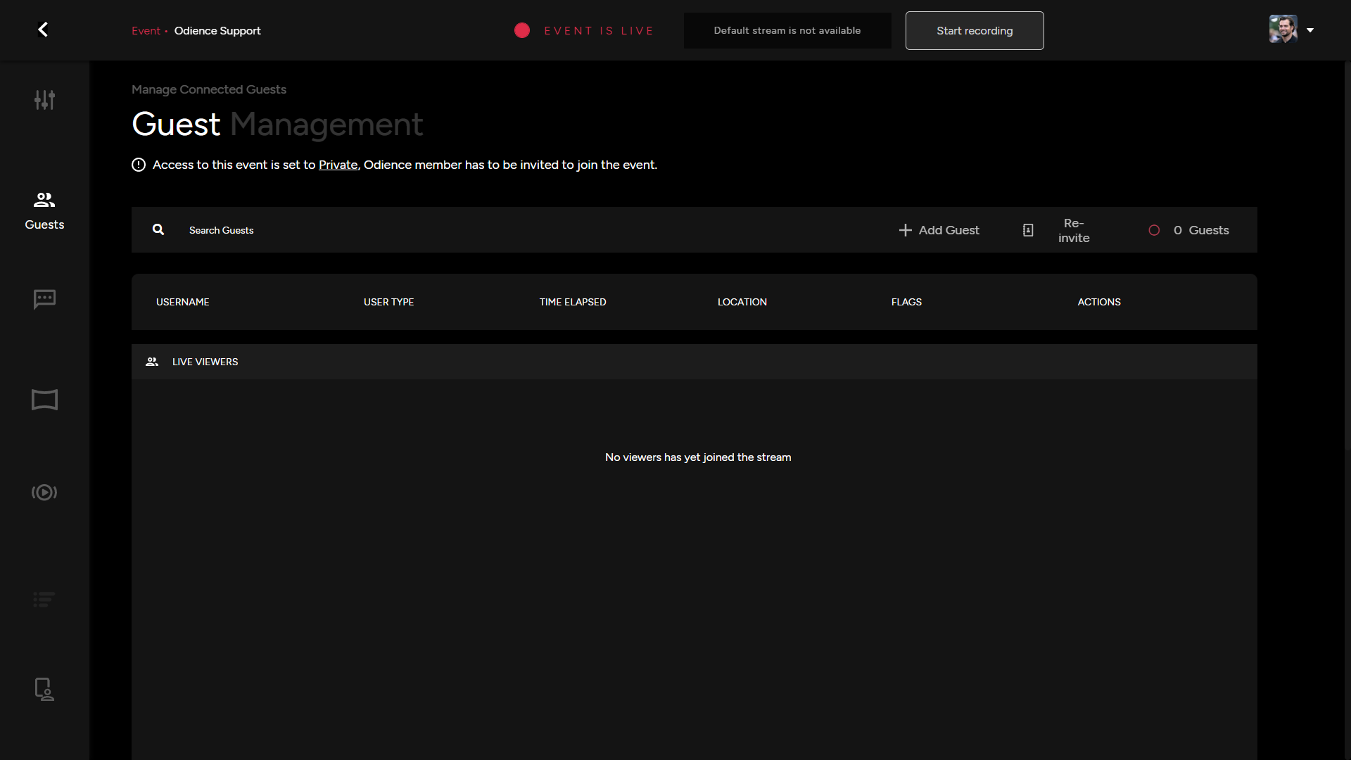 - Manage all areas of your video wall, from Spectators, Invitations, Front Row, Settings and so forth.