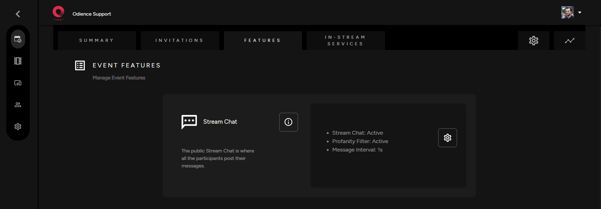 2. Adjust Stream Chat settings. Activate or Deactivate chat, adjust message interval & enable a profanity filter .