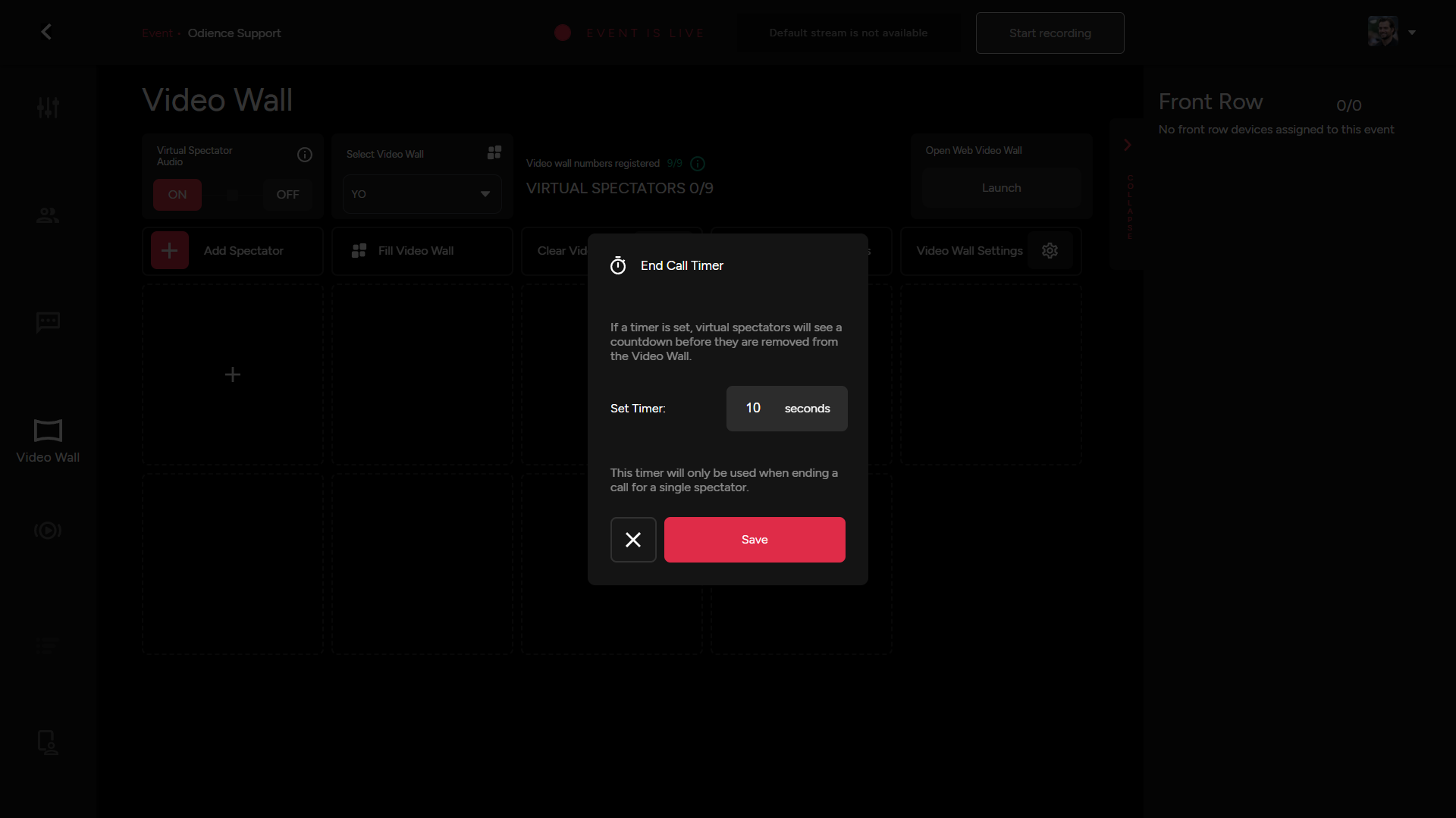 - Remove all the Virtual Spectators from the video with the click of a button. Set a Call Time, this will only be used when ending a call for a single spectator.